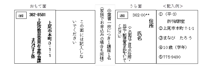 〒362-8501 上尾市本町3-1-1 上尾市教育委員会生涯学習課